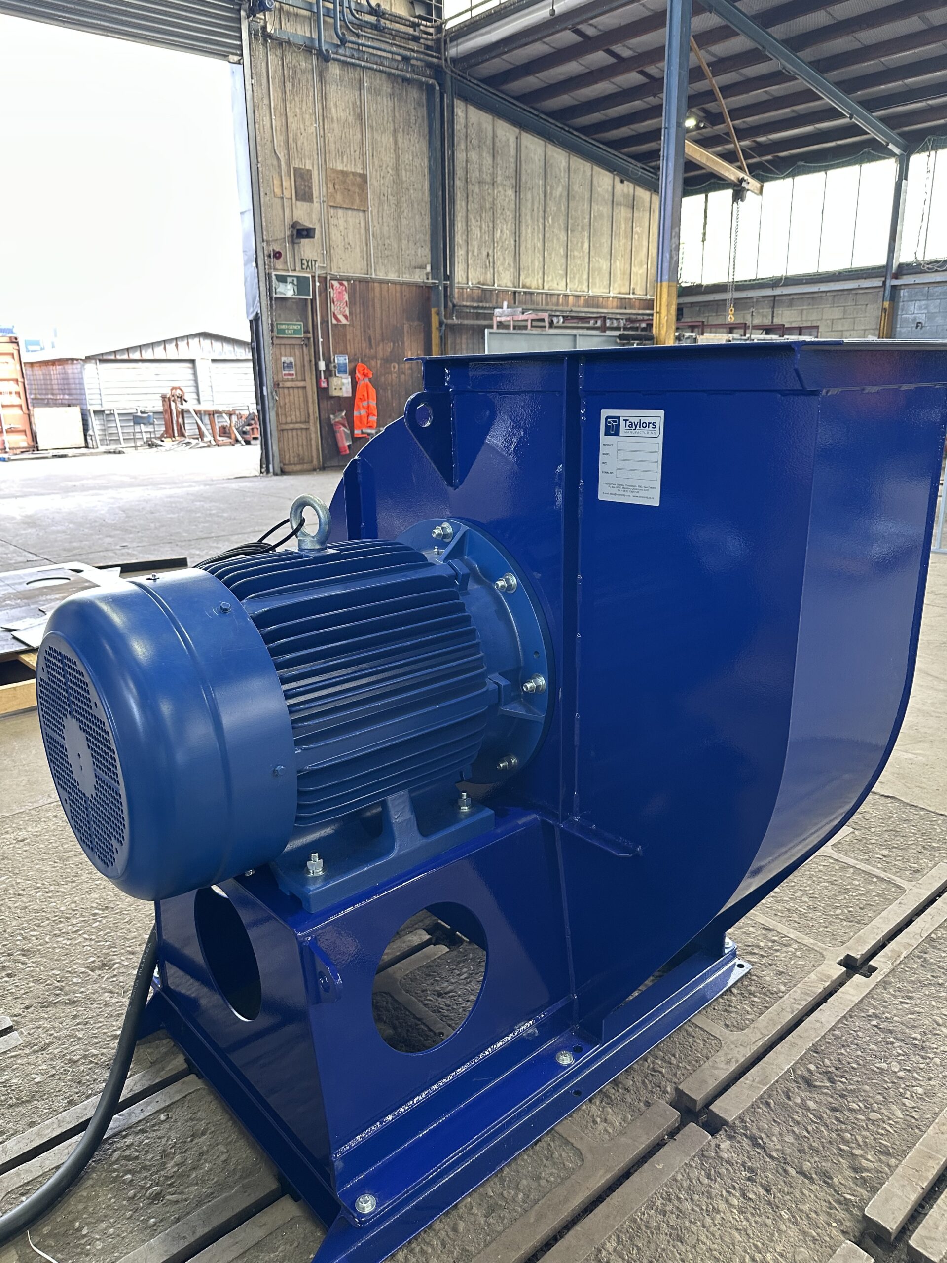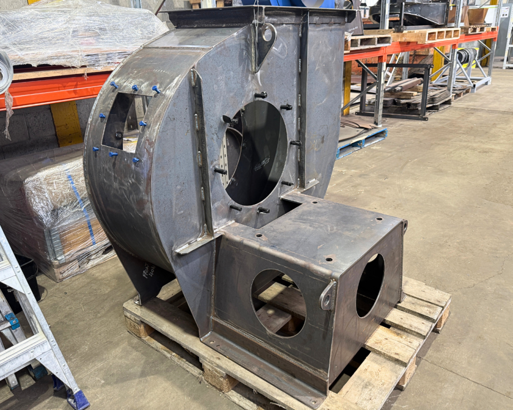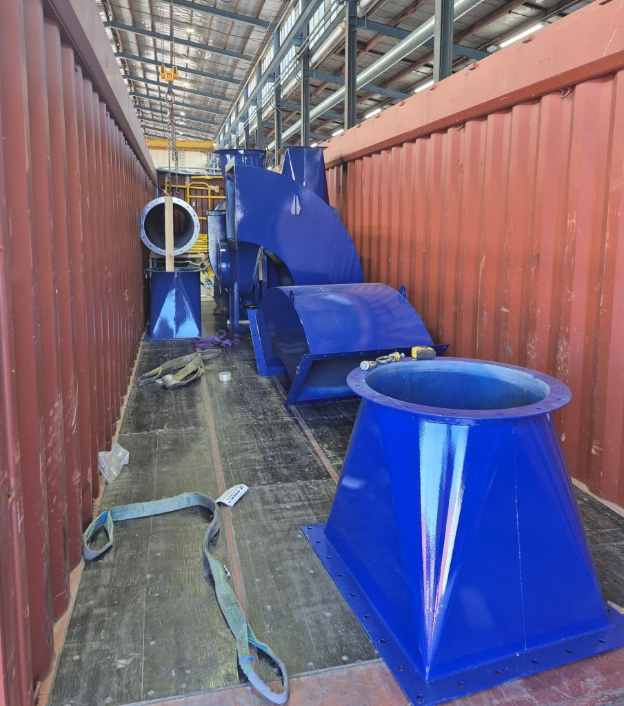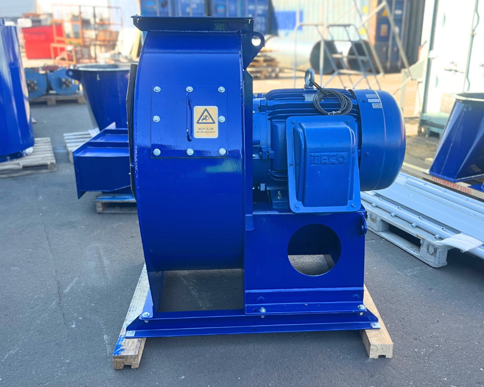 - Exhaust Fan: Taymac FB710 exhaust fan with variable speed drive to handle 25 000 m³/h flow, plus inlet transitions and outlet ductwork.