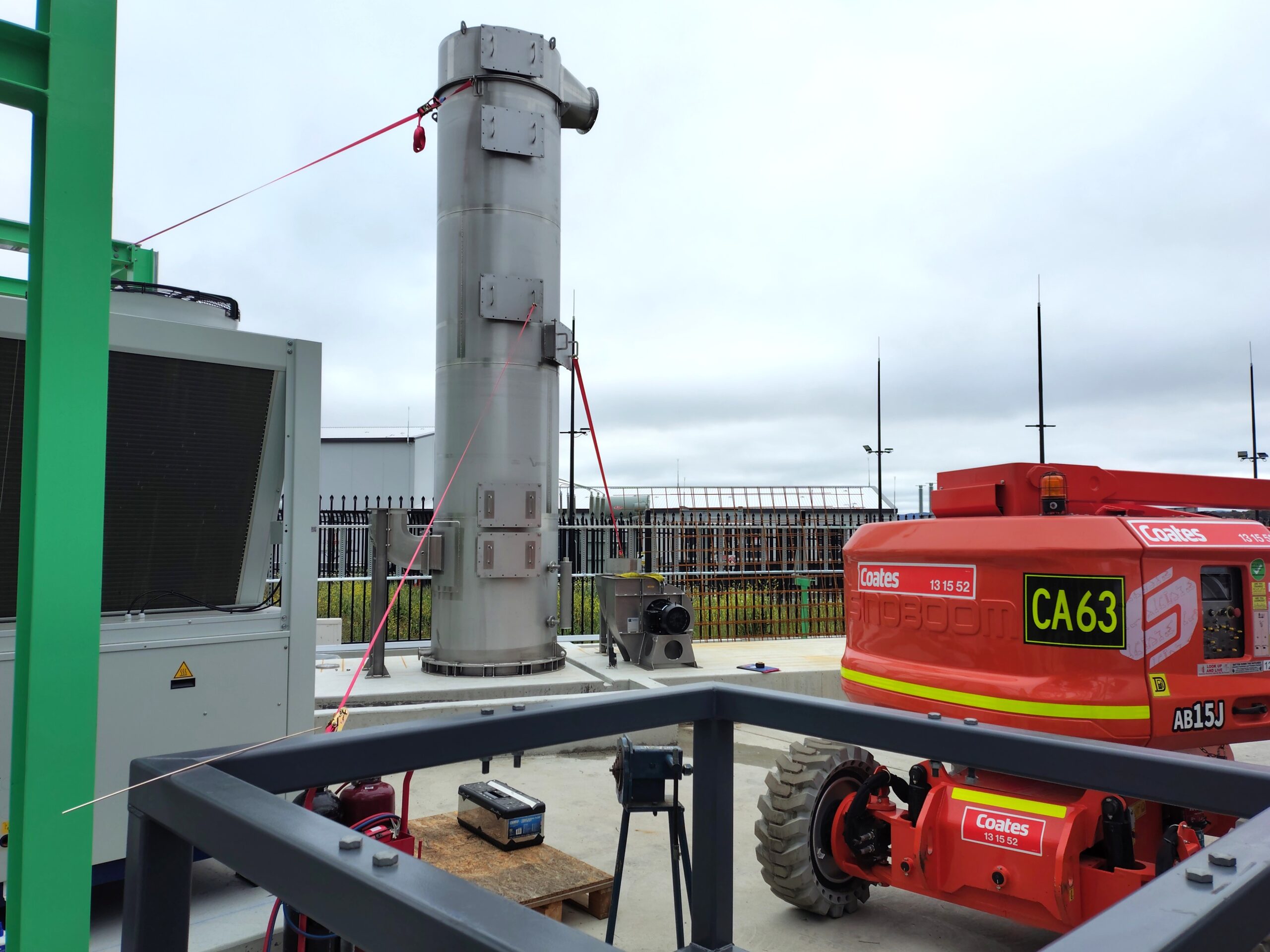 Installation of the main system components is now complete. The wet scrubber, carbon tower, fans, and ductwork are now in place, marking a major milestone in the delivery of this customised air-filtration system for our client in the plastic-recycling sector.