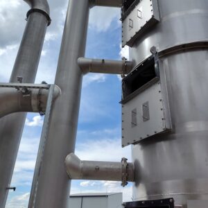 - Wet Scrubbing Unit: Designed to handle a mass flow rate of 7,500 kg/hr, tailored to address the specific chemical profile of the emissions and remove corrosive substances before they enter the rest of the system.