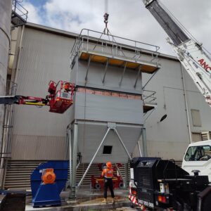 Fowlerex designed, fabricated, and installed a new Baghouse Dust Collector, Fan, and Ducting system to replace an existing unit that was no longer in service.
