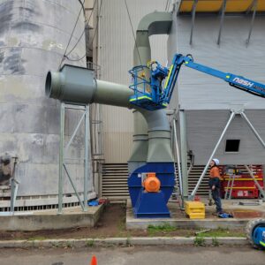 The fan selected for this project is a Taylors FB1000 high-efficiency centrifugal fan, with high temperature modifications. All other components, including the baghouse and ductwork, were fabricated and installed by our partner under Fowlerex’s project management.